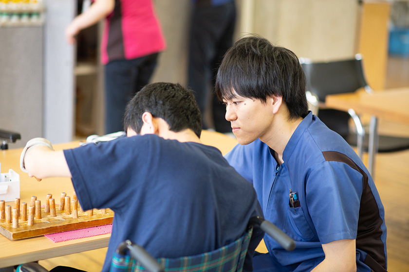 本病棟では対象者の多くが生活期リハビリテーションの適応となります。身体機能の回復を図りながら、様々なテクノエイドなども活用し、残存する能力が最大限発揮できるためのリハビリテーションを提供します。また、社会生活の自立や社会参加に向けた援助にも力を入れています。