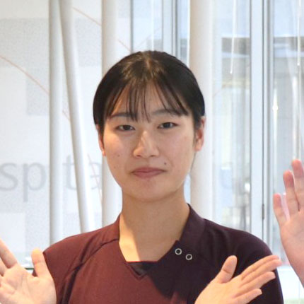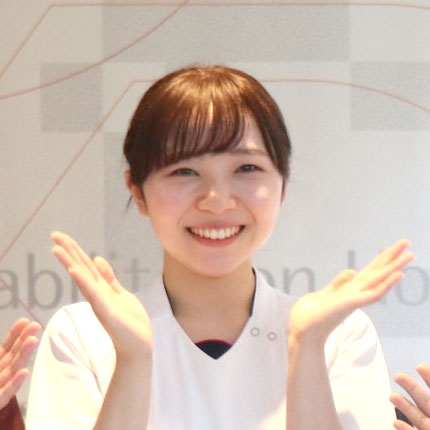 私は実際に働いてみて、わからない時に相談に乗ってくださる先輩方や一緒に笑い合える同期がいて、働きやすいと感じます。現場では介助が必要な患者さんが多いのですが、色々と工夫をしてリハビリテーションを行っていくことで患者さんが自分らしく生活できるようになることが私にとって成長につながっていると思います。