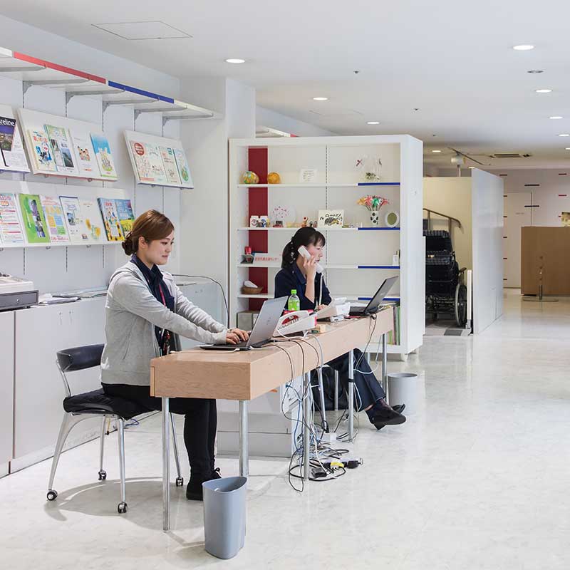 杖等の移動関連用品や特殊寝台、コミュニケーション関連の用具等、約500点の各種福祉用具を展示しています。また、アビリティーズ・ケアネット株式会社と提携し、貸出や販売も行っています。