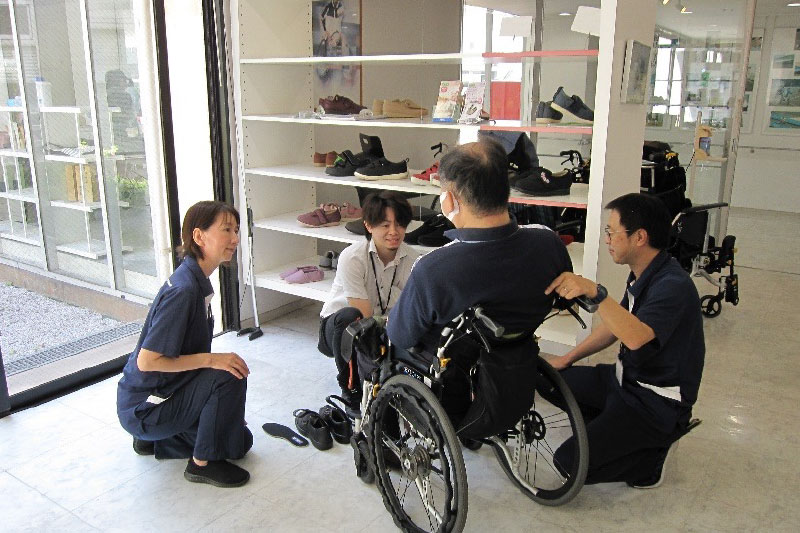 医師や福祉用具専門員、リハビリテーション専門職などが相談をお受けします。身体機能や生活状況に応じた福祉用具の選択、適合に関する相談に応じています。展示品以外にも、必要に応じて試用品を取り寄せて体験評価を行っています。